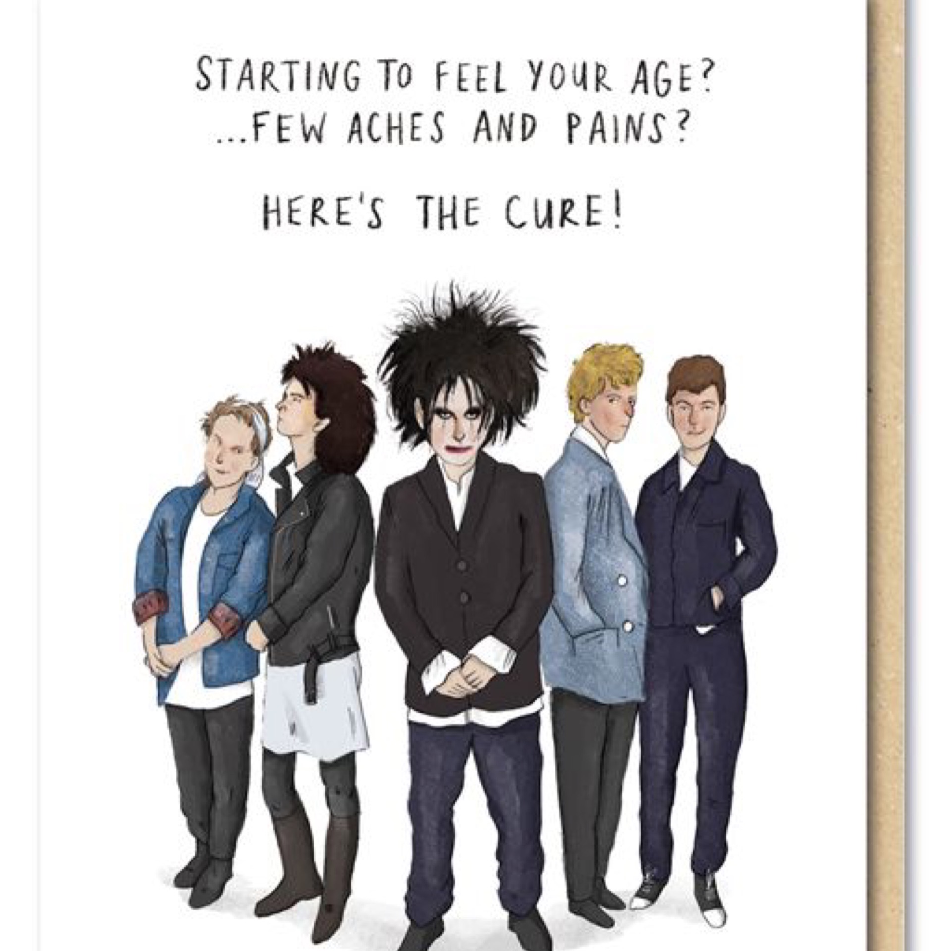 Blank inside greetings card featuring an illustration of The Cure. Funny card would suit a birthday or get well occasion.