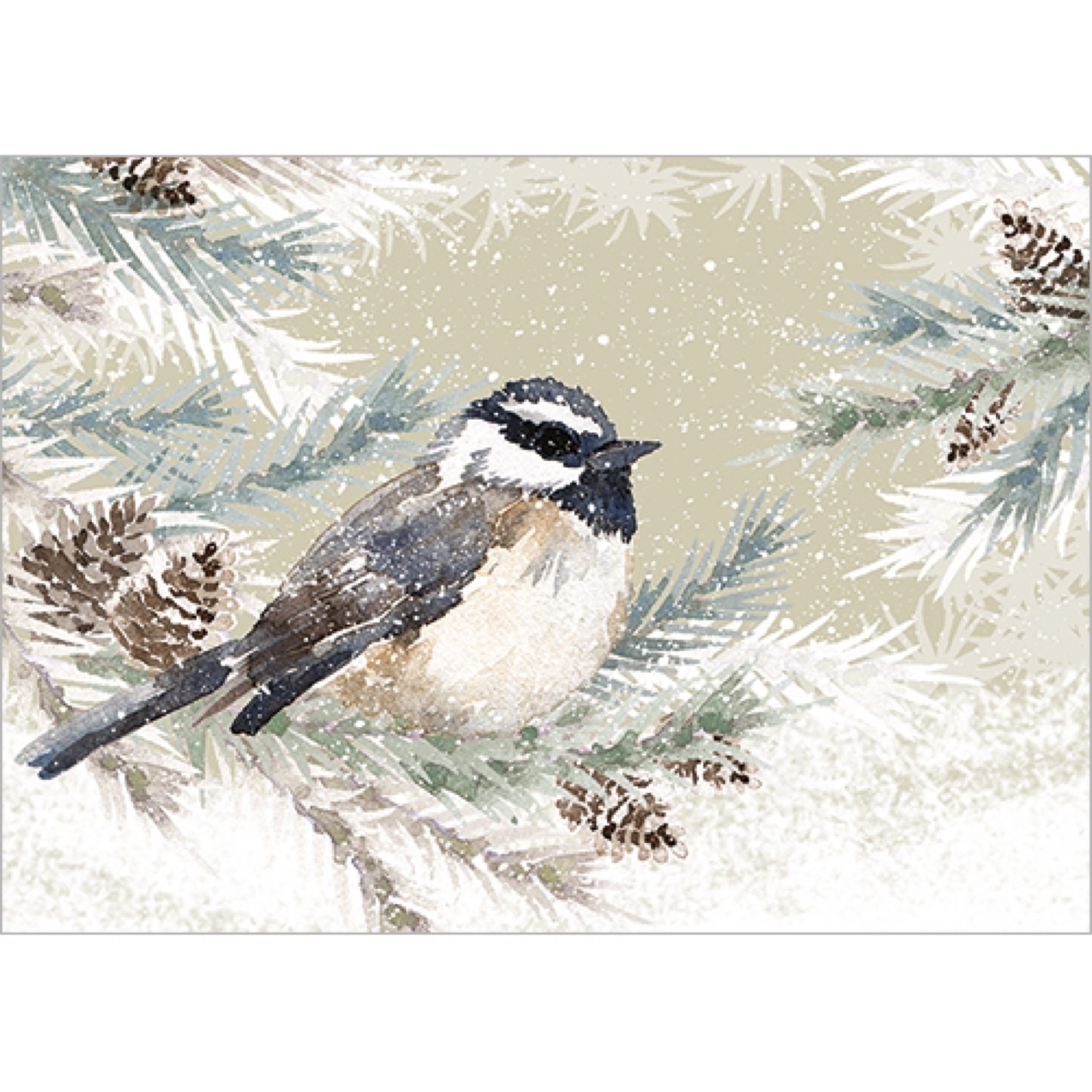 Pack of 8 Christmas cards designed by Laura Stone for Flamingo Paperie. Message inside reads ‘Best Wishes for Christmas and the New Year’.