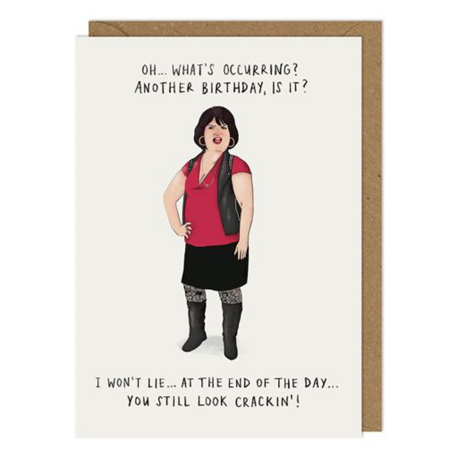 Funny Nessa inspired Birthday card. Card is blank inside for your own message.